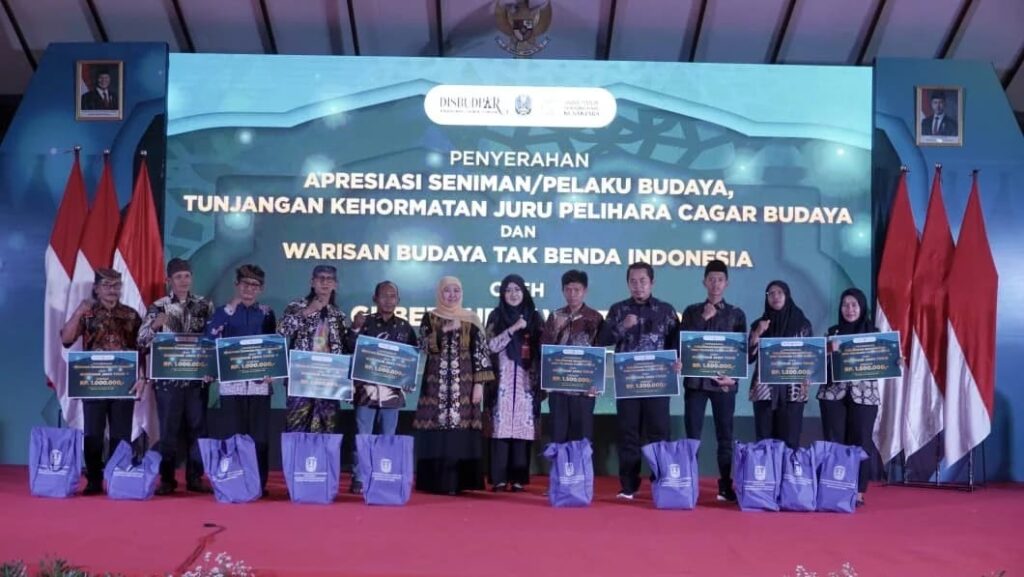 Surabaya, – Pemerintah Provinsi Jawa Timur menyerahkan apresiasi kepada seniman dan pelaku budaya, tunjangan kehormatan juru pelihara cagar budaya, serta sertifikat Warisan Budaya Takbenda Indonesia (WBTbI) dalam rangkaian kegiatan yang digelar di Taman Krida Budaya Jawa Timur, Kota Malang, Minggu (22/2/2026).