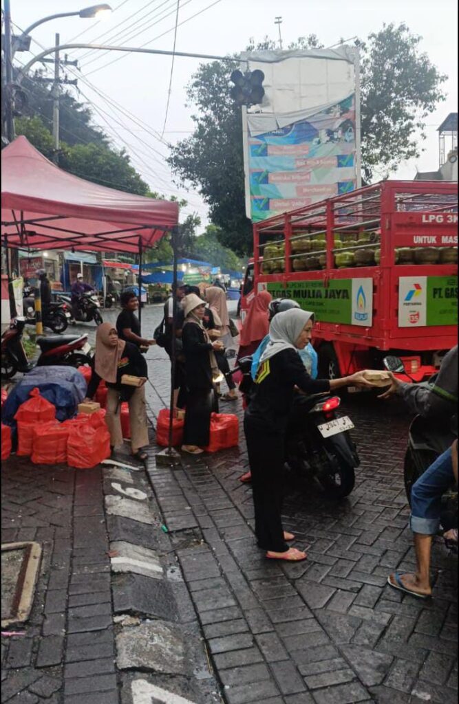 Kolaborasi komunitas Lanang t3lon dan Passer wong bodho gelar bagi ta’jil gratis di bulan yang penu keberkahan di jalan sunan giri.