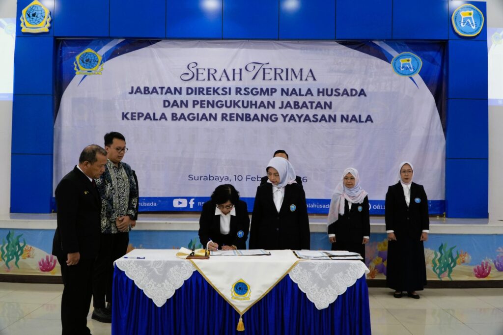 Pilarmaritim.com -Surabaya, 10 Februari 2026 — Yayasan Nala menyelenggarakan acara Serah Terima Jabatan (Sertijab) Direksi Rumah Sakit Gigi dan Mulut Pendidikan (RSGMP) Nala Husada serta Pengukuhan Kepala Bagian Perencanaan dan Pengembangan Yayasan Nala pada Selasa (10/2/2026). Kegiatan berlangsung di Aula Laksamana Nala RSGMP Nala Husada dalam suasana khidmat dan penuh kekeluargaan.