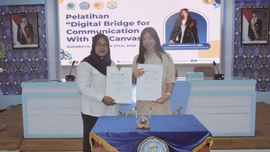 Surabaya — Universitas Hang Tuah terus memperluas jaringan kolaborasi global melalui kegiatan bertajuk “Digital Bridge for Communication with MiriCanvas”, yang diselenggarakan pada 27 Oktober 2025 bertempat di Ruang Seminar Gedung Rektorat Lantai 2 Universitas Hang Tuah.